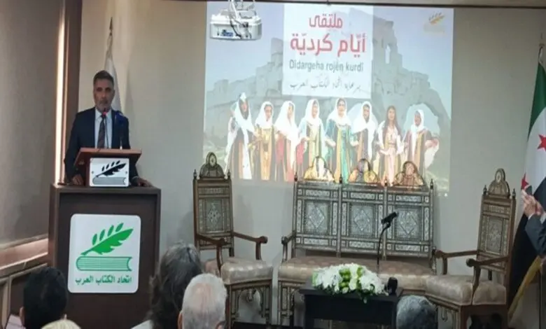 Arap Yazarlar Birliği Şam’daki Birlik binasında, tarihinde ilk kez, iki gün süren bütünleşmiş bir kültürel kutlama olarak “Kürt Günleri” forumunu düzenledi; bu forum, Suriyeli Kürt şair, yazar ve araştırmacıları bir grup edebi, sanatsal ve müzikal bir alanda bir araya getiriyor; bu forum, Kürt kimliğini Suriye toplumunun ayrılmaz bir parçası olarak aydınlatıyor ve Suriye toplumuna bu kültürün zenginliğini ve çeşitliliğini tanıtıyor.