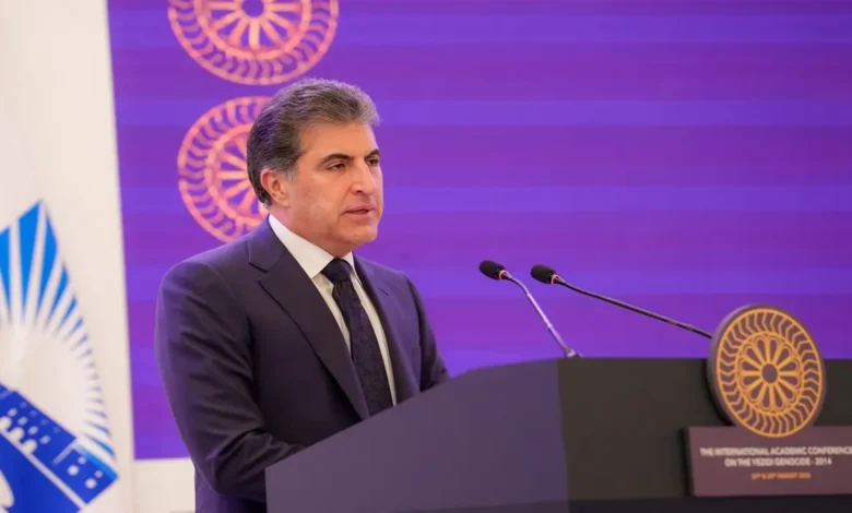 Erbil’deki Kürdistan Üniversitesi’nde düzenlenen “Ezidi Kürtlerine Yönelik Soykırım Konferansı”nda konuşan Başkan Neçirvan Barzani, Ezidi toplumunun yaklaşık yarısının hala kamp koşullarında yaşadığını vurgulayarak, adaletin sağlanması için atılması gereken adımları sıraladı.
