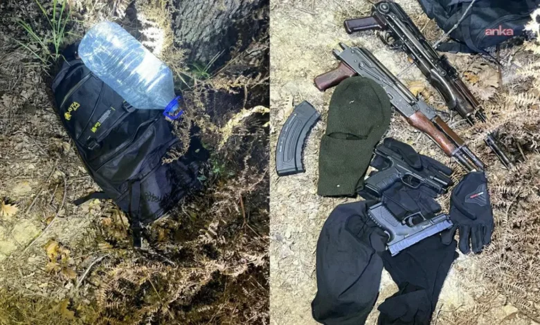 Olayda kullanılan silahlar ve teçzihatın yakalanmasına ilişkin görüntüler yayımlandı. Ormanlık alana gizlenmiş çanta içerisinden iki Kalaşnikof ve iki tabanca olmak üzere toplam dört silah ele geçirildi. Saldırganları kullandığı kar maskesi ve eldiven teçhizatlar da çantadan çıktı.(ANKA)