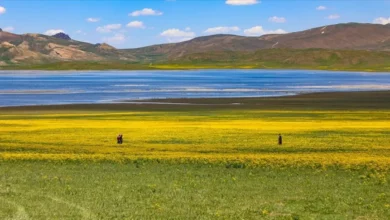 Van’ın Gürpınar ilçesinde Erek Dağı eteklerinde bulunan ve çevresi sarı çiçeklerle bezenen 2 bin 500 rakımlı Keşiş Gölü (Turna), doğal…